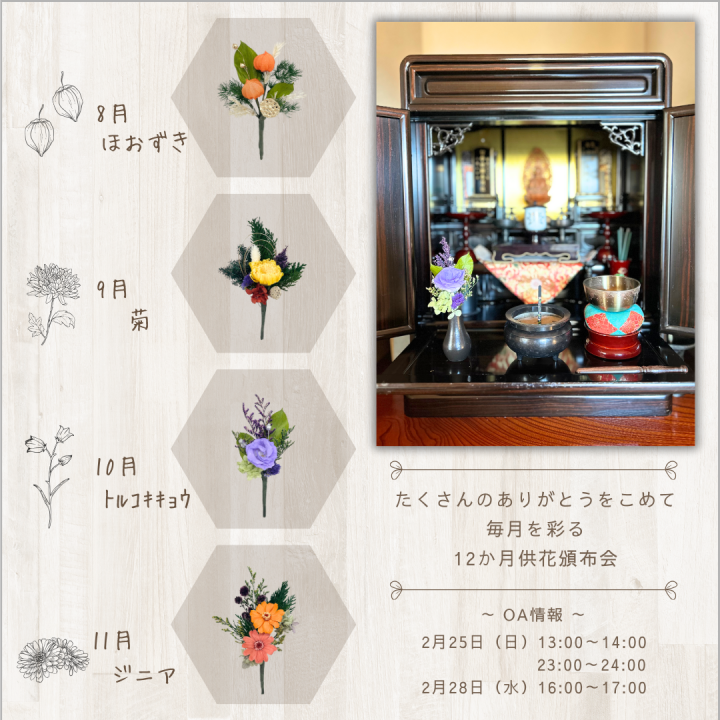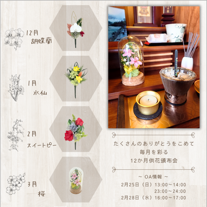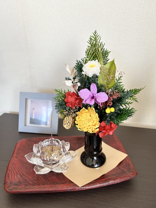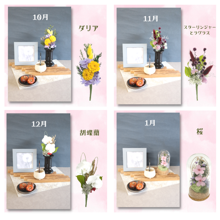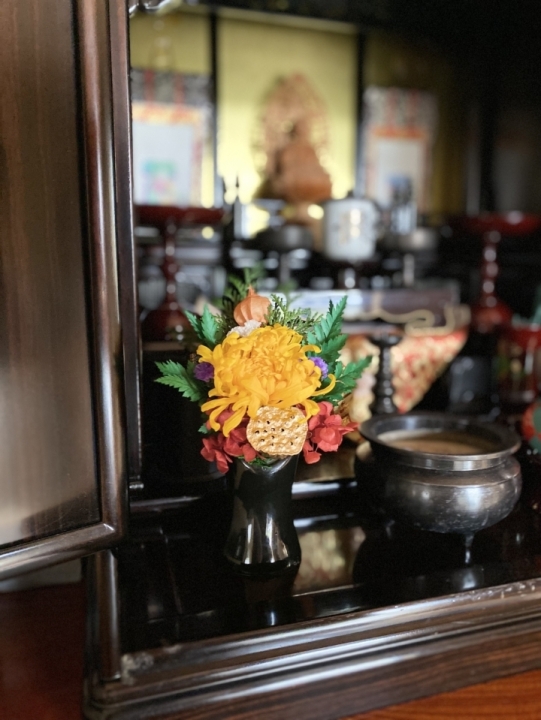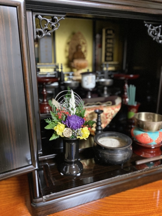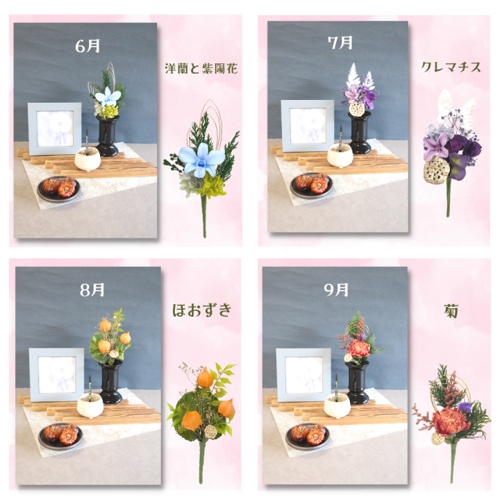 月命日のご供養の時間、普段のご供養を、毎月新しく届く小さな供花で