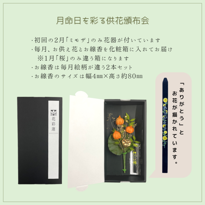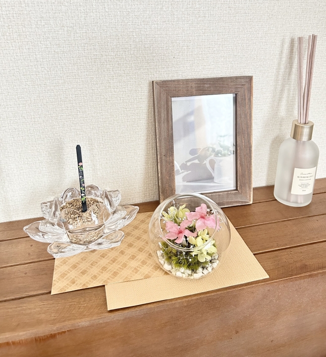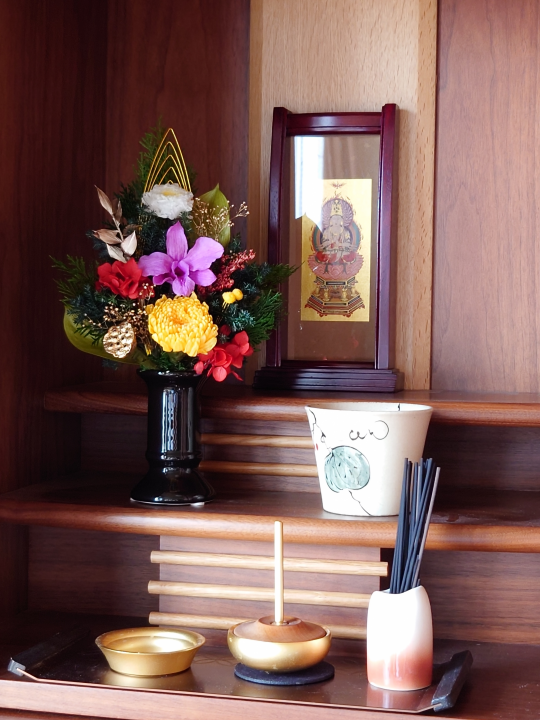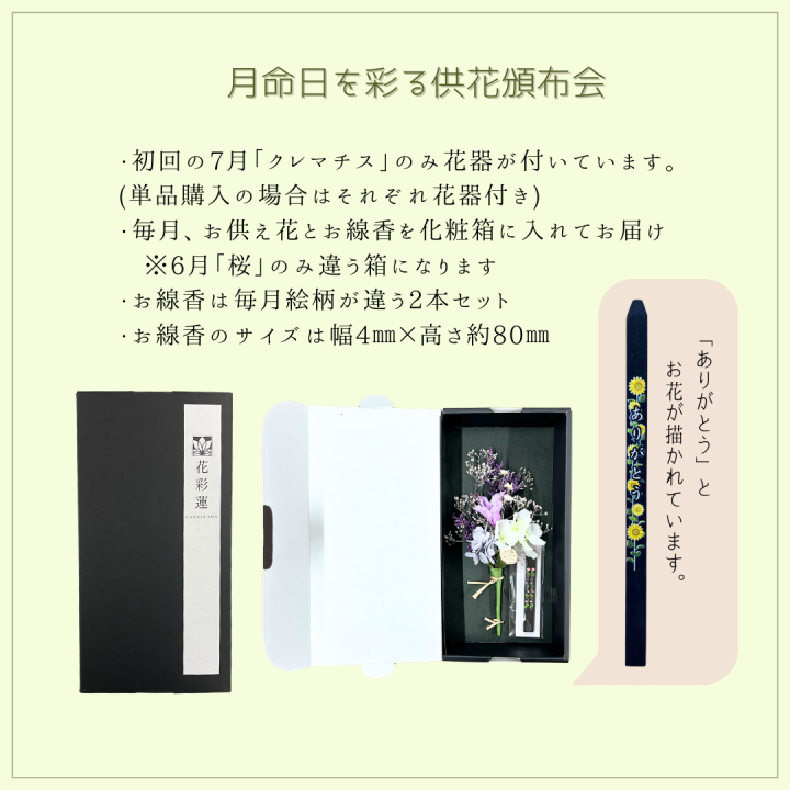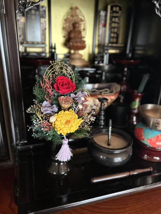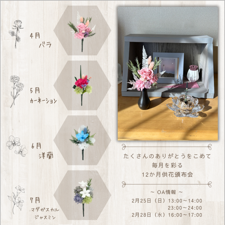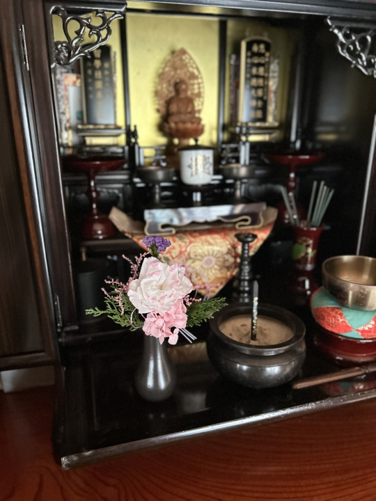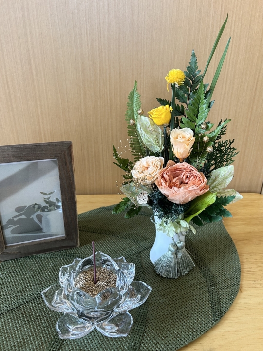 月命日のご供養の時間、普段のご供養を、毎月新しく届く小さな供花で