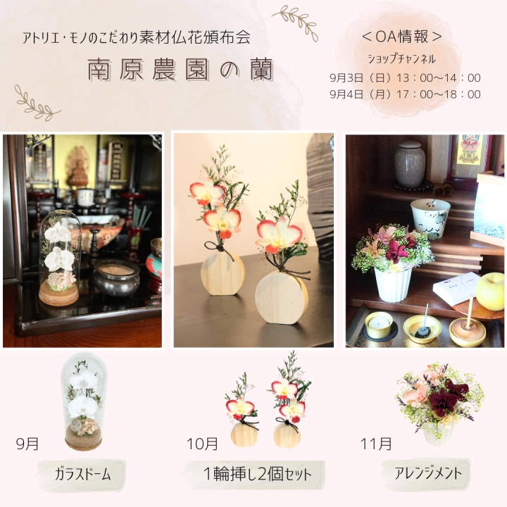 8月 葉月芳蘭(洋蘭)、9月 長月秋結び(菊)