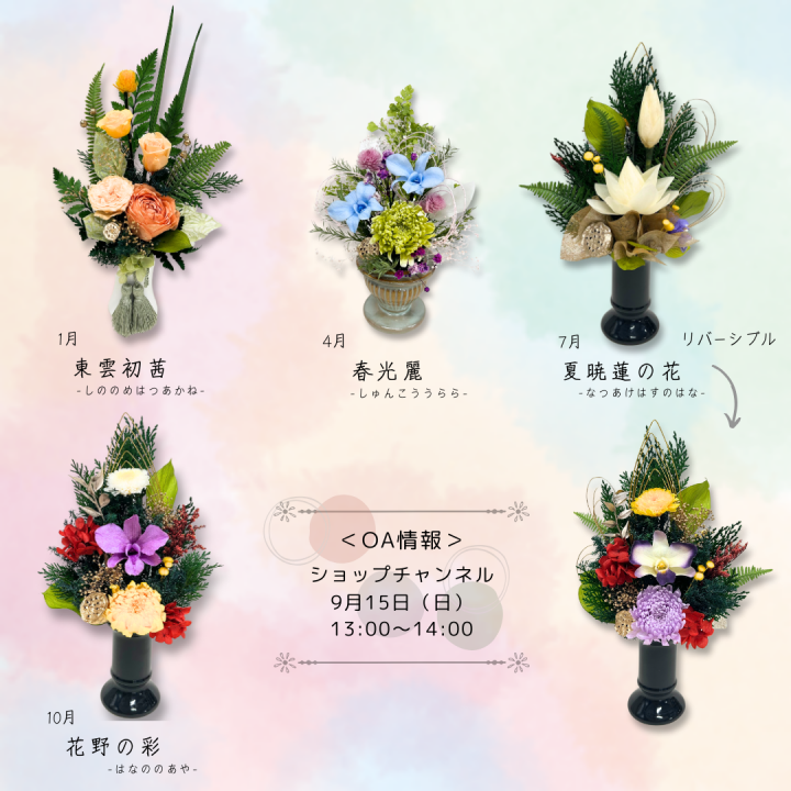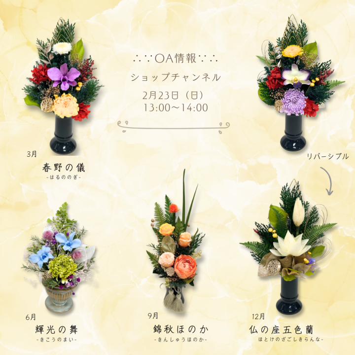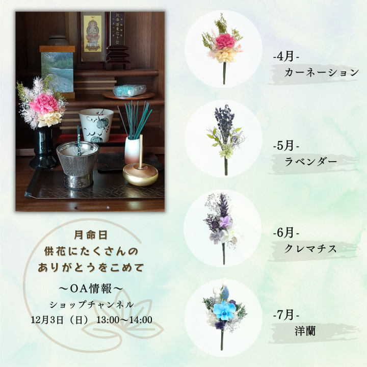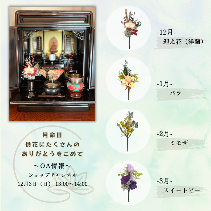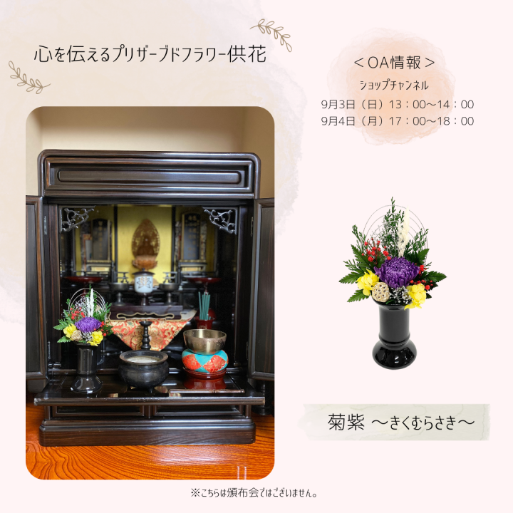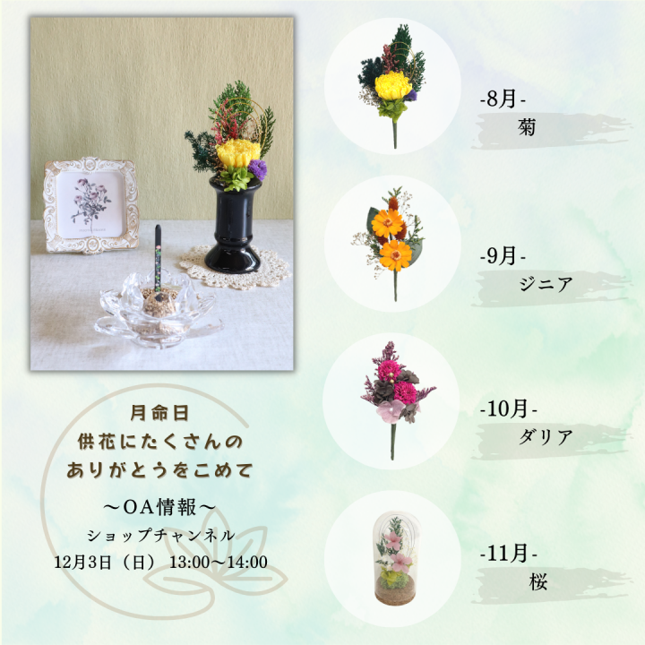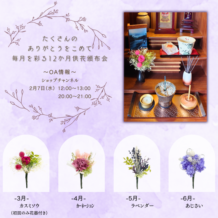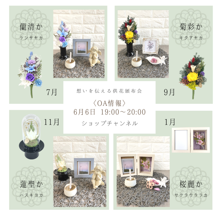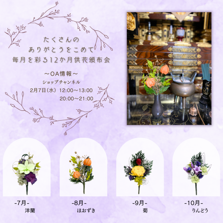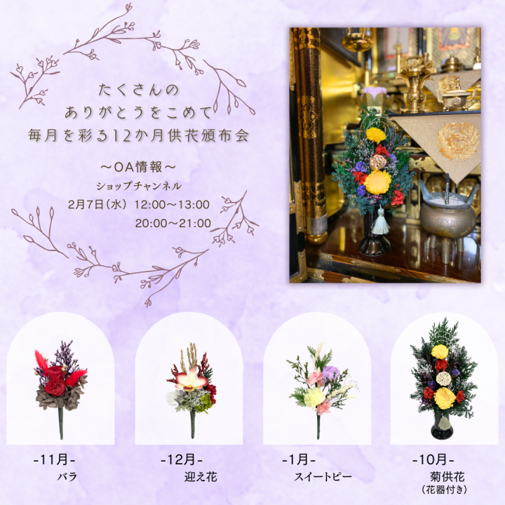 テレビショッピング「ショップチャンネル」にてプリザーブドフラワー供花頒布会(単品販売もあり)を販売致します。