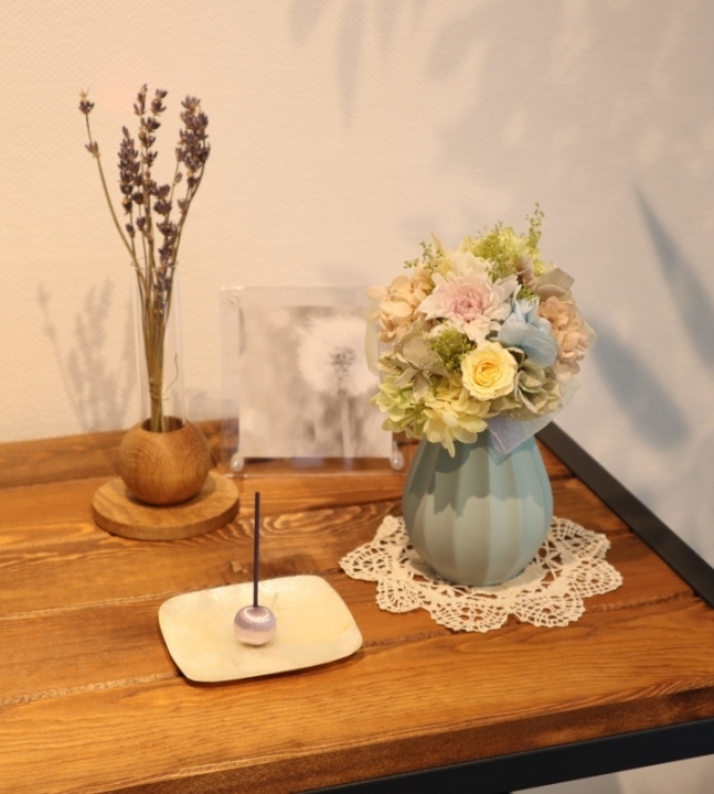 毎月お花が届くたびに新しい供花に取り替えたり、ご自宅にある違う花器に飾ることが出来ます。