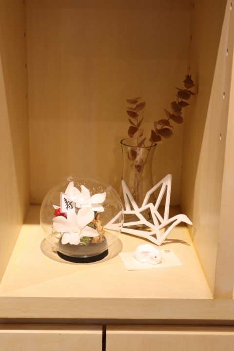 折り返し月の3月に人気の桜(ソメイヨシノ)がガラスドームに入ったアレンジメント、